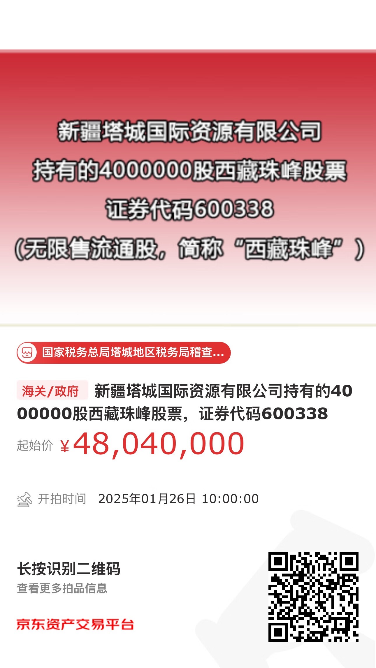 受國家稅務(wù)總局塔城地區(qū)稅務(wù)局稽查局委托,我司將于2025年1月26日上午10時至2025年1月27日上午10時止(延時除外)在京東資產(chǎn)交易平臺上(https://zcpm.jd.com/gov)進(jìn)行公開拍賣活動,現(xiàn)公告如下: