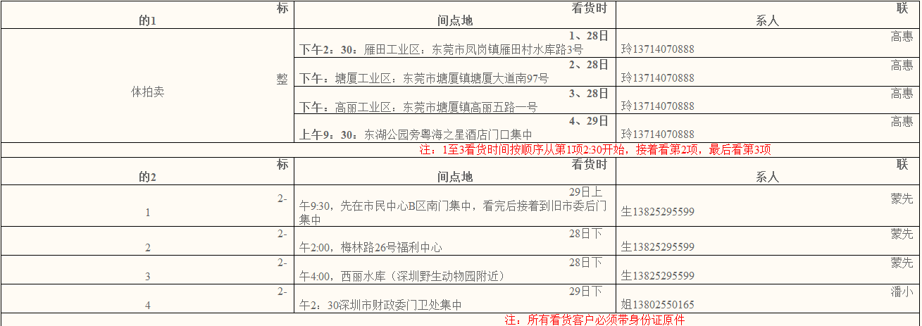 有意競買者請于12月29日16時前將保證金匯入(戶名:廣東迅興拍賣有限公司,帳號:41-009100040008541,開戶行:中國農(nóng)業(yè)銀行深圳錦湖支行);并于12月29日18時前攜帶有效證件到我司辦理競買登記手續(xù),逾期不予辦理。