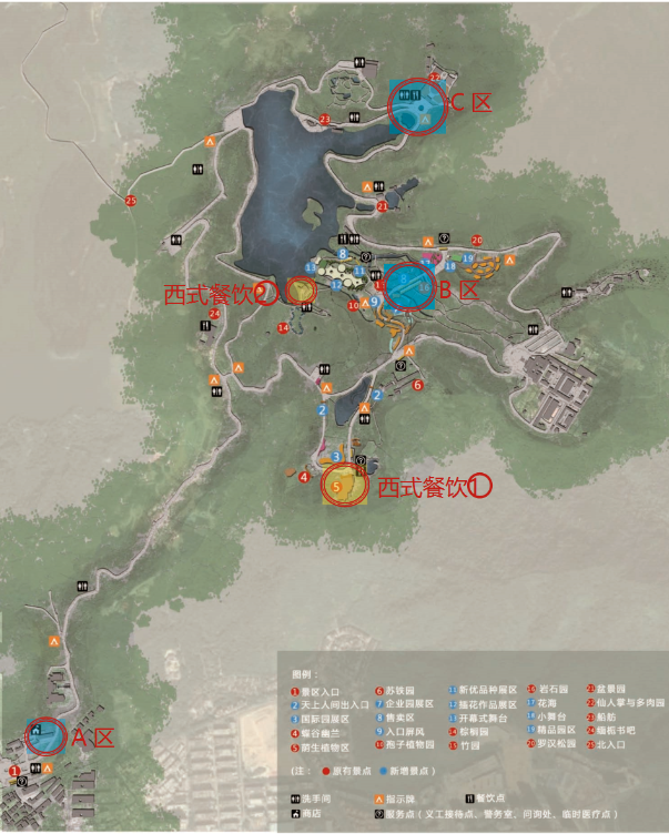 1、爾瞻軒餐飲點(diǎn)(面積40m2):位于天上人間蔭生植物區(qū)門(mén)口右側(cè),花展國(guó)際園區(qū)域內(nèi);