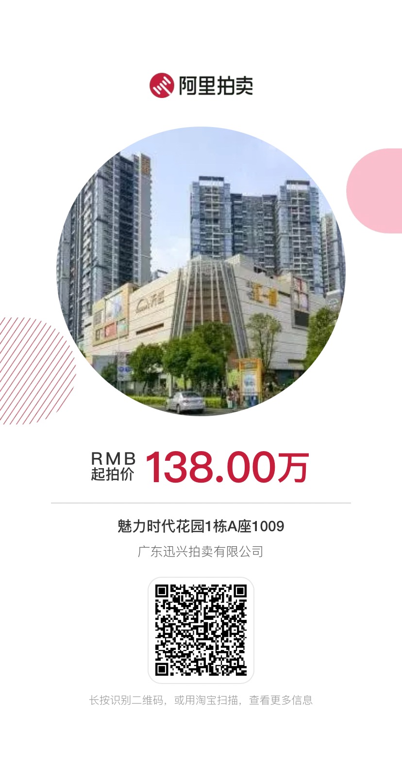 受委托,廣東迅興拍賣有限公司將于 2021 年 5 月10日 10 時至 2021 年 5 月11日 10 時止(延時除外)在阿里巴巴旗下資產(chǎn)處置平臺( 網(wǎng)址: http://zc-paimai.taobao.com)進行公開拍賣,現(xiàn)公告如下: