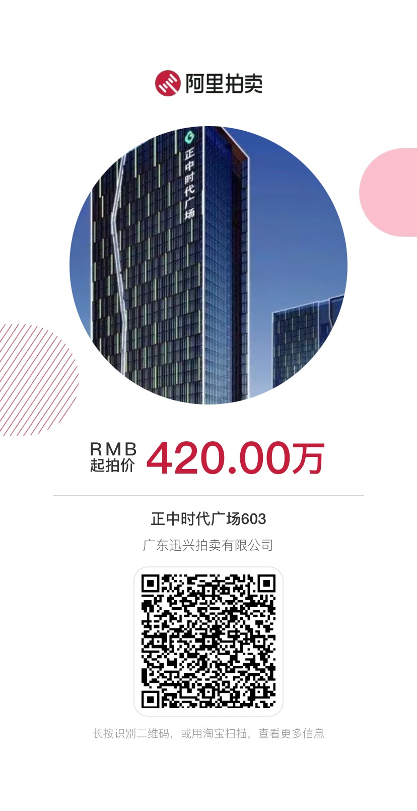 標(biāo)的物描述:唯一一套超低價房產(chǎn),正中時代廣場603,面積195.13平方米,房產(chǎn)證:深房地字第6000508903號,起拍價:420萬(目前為帶裝修,無人辦公,拍賣成交過戶完畢后,即可移交);項目位于龍崗CBD,緊臨龍崗區(qū)政府,地鐵口物業(yè),國際5A甲級寫字樓標(biāo)準,戶型方正實用,此物業(yè)房產(chǎn)紅本在手,目前市場在賣價格600萬左右,原出租租金18000元每月左右。