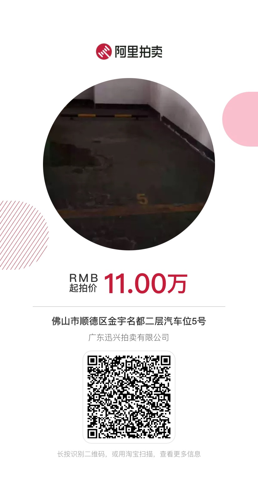 標(biāo)的物描述:該標(biāo)的位于佛山市順德區(qū)樂從社區(qū)居民委員會樂從大道東A269號金宇名都二層汽車位5號,目前無人使用。