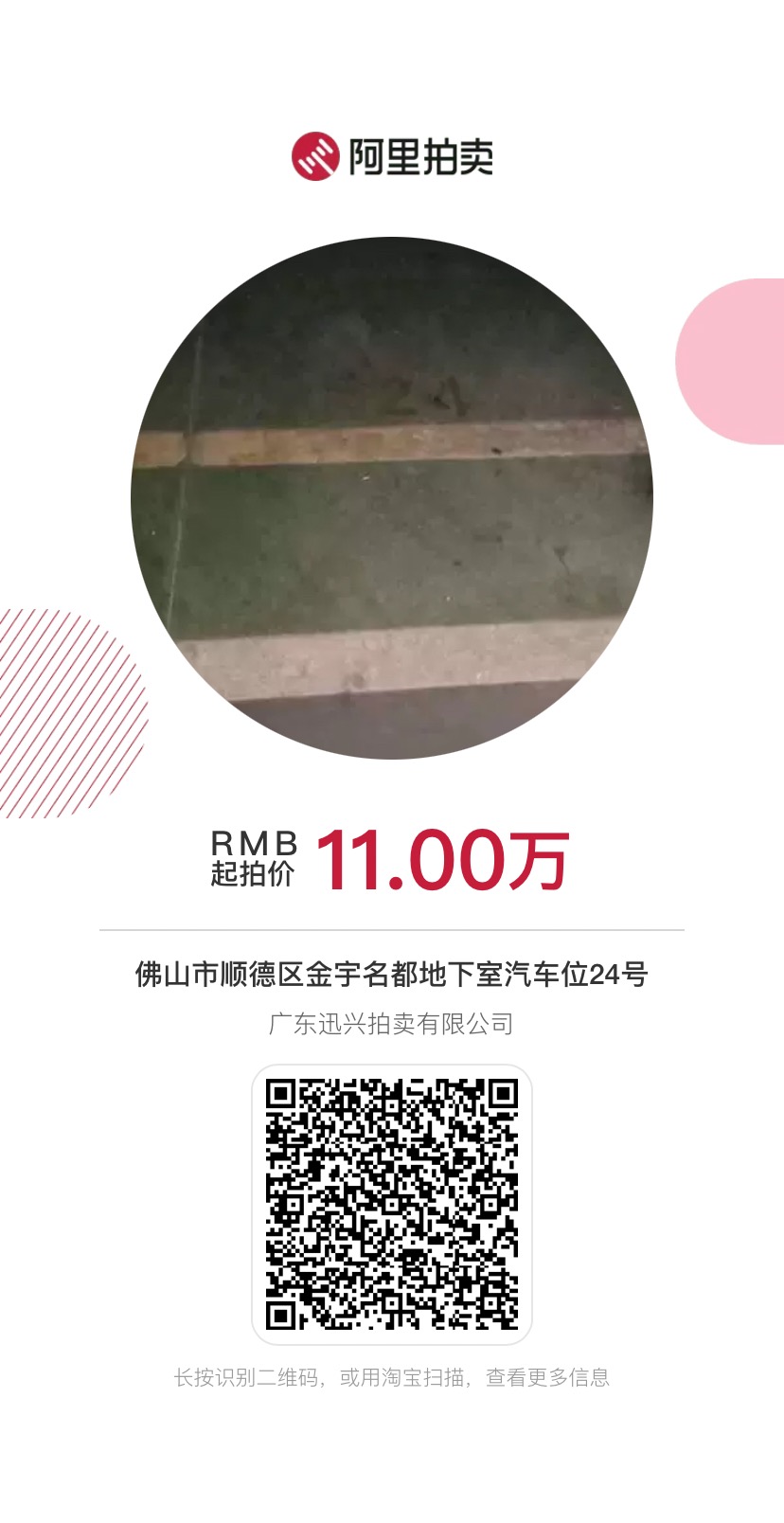 標(biāo)的物描述:該標(biāo)的位于佛山市順德區(qū)樂從社區(qū)居民委員會樂從大道東A269號金宇名都地下汽車位24號,目前無人使用。