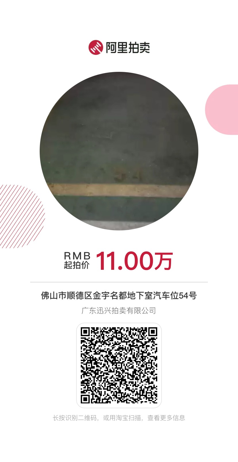 標(biāo)的物描述:該標(biāo)的位于佛山市順德區(qū)樂從社區(qū)居民委員會樂從大道東A269號金宇名都地下汽車位54號,目前無人使用。