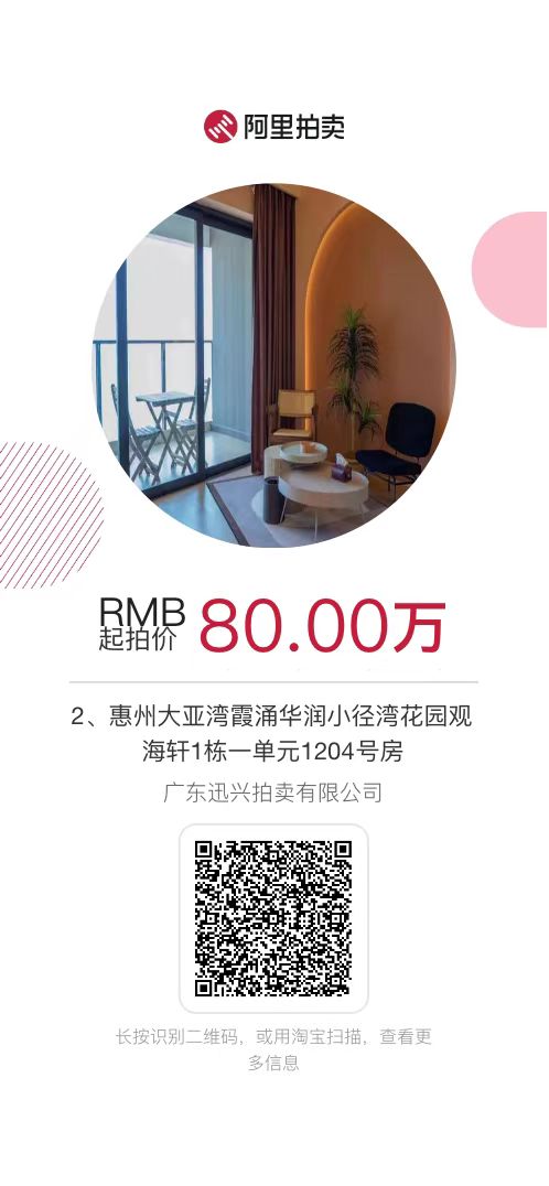 上述拍賣標(biāo)的權(quán)利人類別均為單位,用途均為城鎮(zhèn)住宅用地/成套住宅,性質(zhì)均為出讓/商品房,均位于惠州大亞灣霞涌小徑灣1號(hào)華潤(rùn)小徑灣花園觀海軒。目前狀況是:1、房產(chǎn)帶裝修,目前做短租酒店式公寓,拍賣成交過(guò)戶后即可移交。2、物業(yè)無(wú)擔(dān)保,標(biāo)的如有欠費(fèi),均由原業(yè)主承擔(dān)。