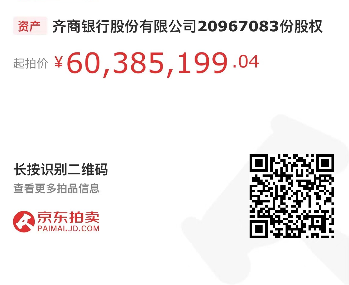 一、拍賣標(biāo)的:齊商銀行股份有限公司20967083份股權(quán)