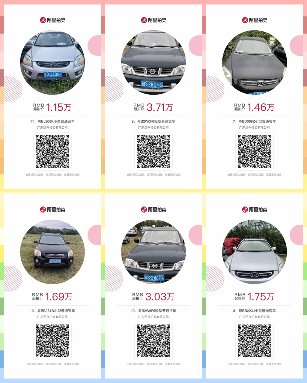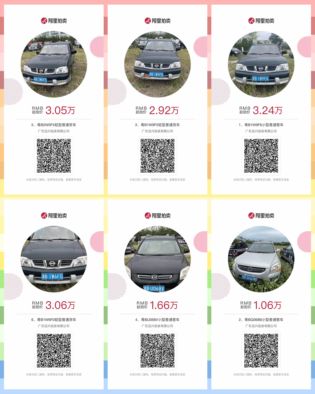 受委托,廣東迅興拍賣有限公司茲定于2022年5月17日10時(shí)起至2022年5月18日10時(shí)止(延時(shí)除外)在阿里巴巴旗下資產(chǎn)處置平臺(tái)( 網(wǎng)址:https://zc-paimai.taobao.com)對(duì)下列標(biāo)的進(jìn)行公開拍賣,現(xiàn)公告如下:【下載車輛信息表】