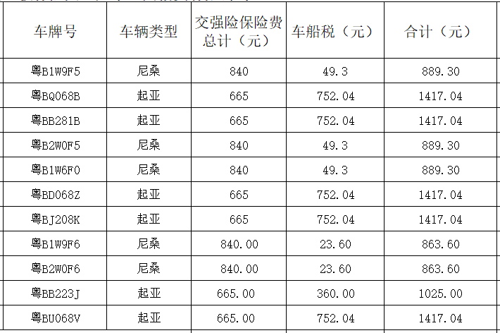 十一、拍賣成交價不包含拍賣傭金(成交價的5%)及淘寶平臺技術(shù)服務費(成交價的1%)、代國家稅務局征收的增值稅及附加(成交價的3.36%)、車輛過戶服務費人民幣1500元/輛、車輛評估費用人民幣2000元/輛、車輛年審費用1000元/臺、車輛過戶履約保證金人民幣5000元/輛、車輛交強險和車船稅費用如下表: