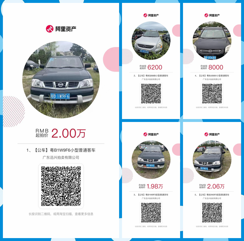 受委托,廣東迅興拍賣有限公司茲定于2022年7月6日10時起至2022年7月7日10時止(延時除外)在阿里巴巴旗下資產(chǎn)處置平臺( 網(wǎng)址:https://zc-paimai.taobao.com)對下列標的進行公開拍賣,現(xiàn)公告如下:【點擊下載車輛信息表】 【車輛圖片】 【車輛行駛證】