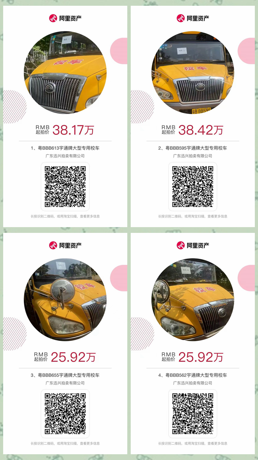 2、粵BBB595大型專用校車,起拍價:384200元,保證金 :80000元,加價幅度:1000元。