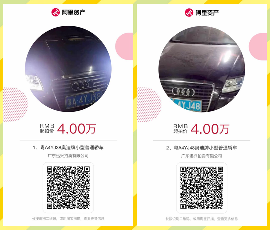 2、粵A4YJ48奧迪牌小型普通轎車,起拍價(jià):40000元,保證金 :10000元,加價(jià)幅度:1000元。