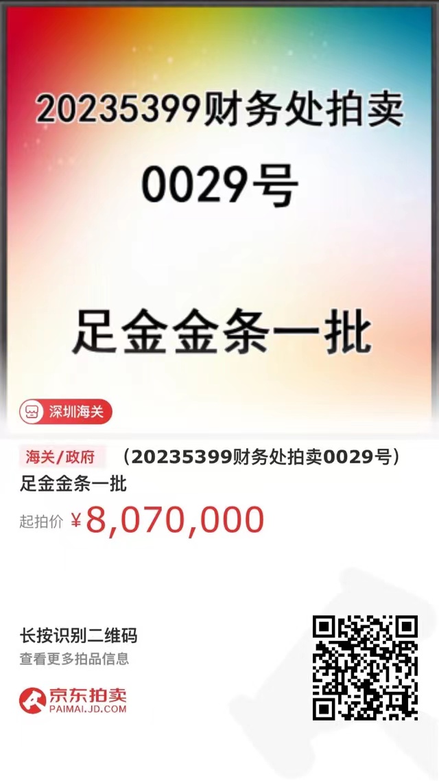1、(20235399財(cái)務(wù)處拍賣0029號(hào))足金金條一批,競(jìng)買保證金150萬元。【點(diǎn)擊下載清單】
