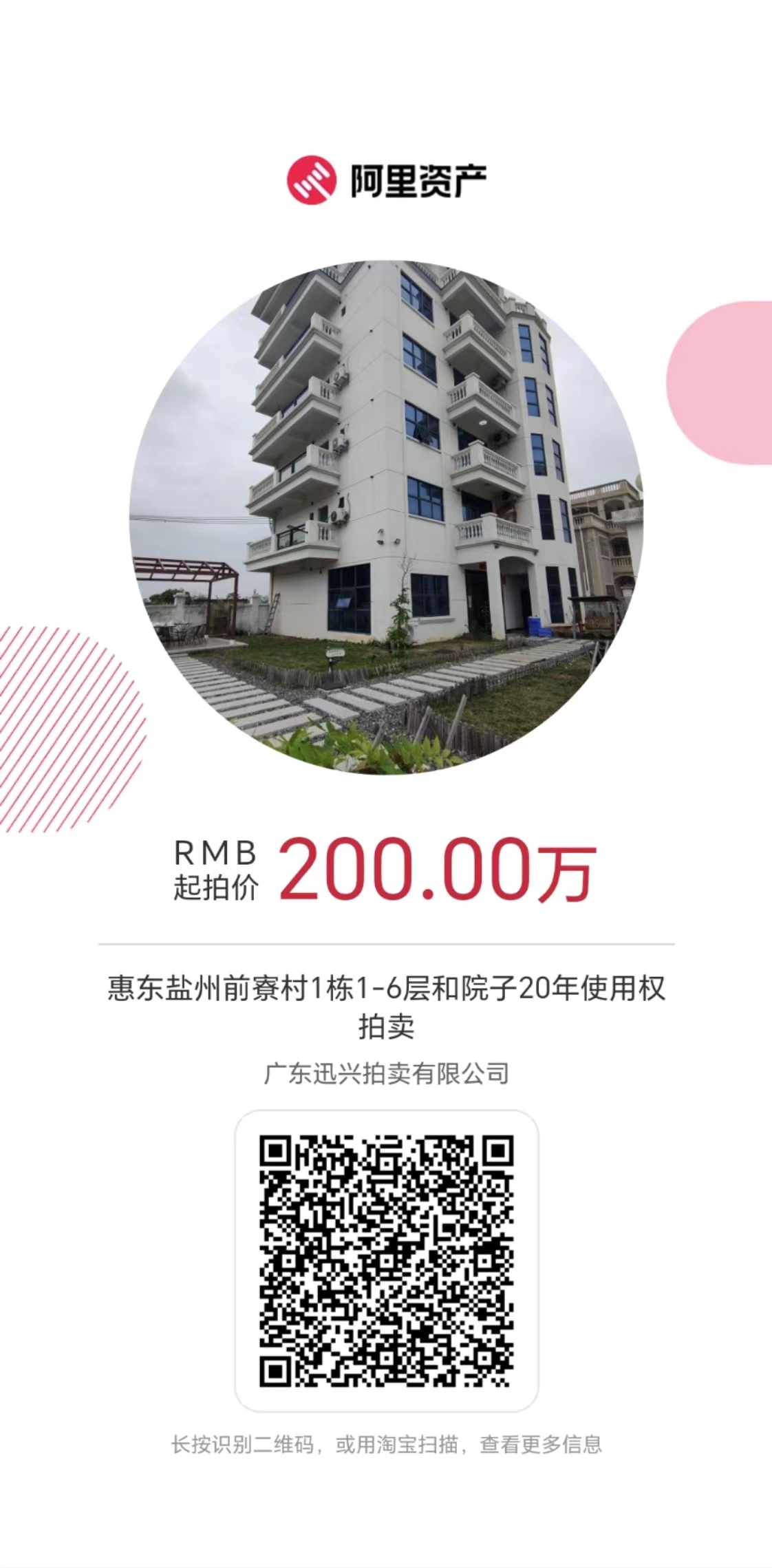 惠東鹽州前寮村1棟1-6層和院子20年使用權(quán)拍賣  |