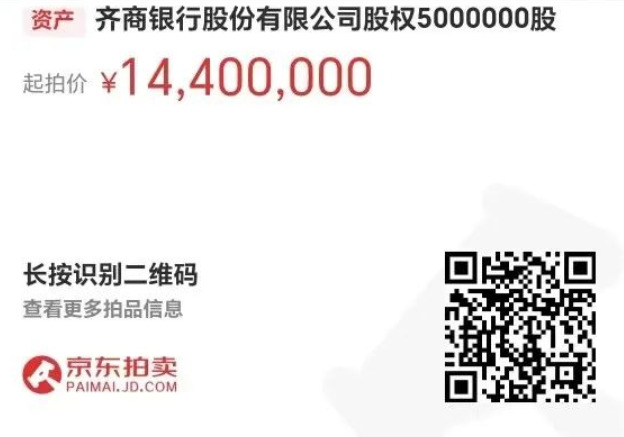 一、拍賣標(biāo)的:齊商銀行股份有限公司股權(quán)5000000股
