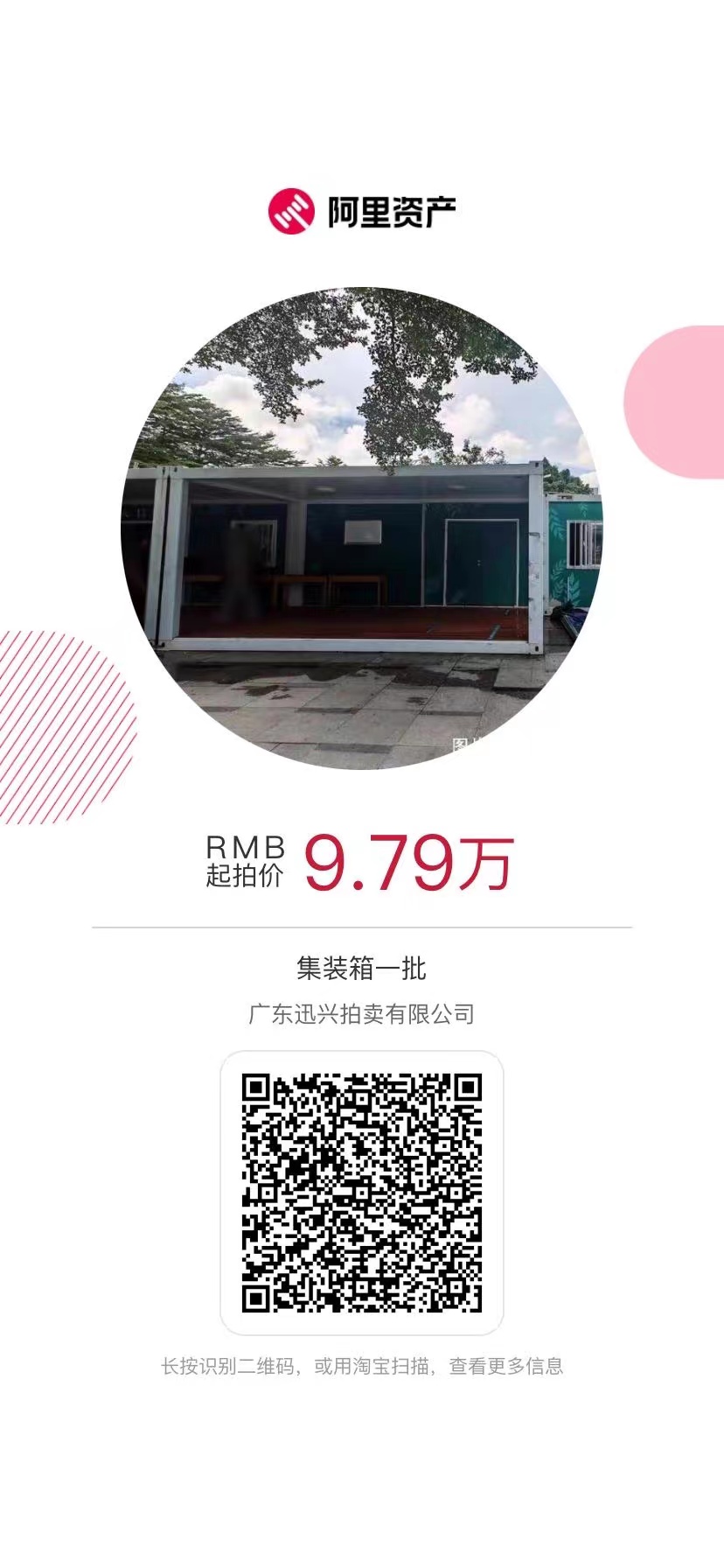 受委托,廣東迅興拍賣有限公司定于2023年8月22日10時起至2023年8月22日11時止(延時除外)在阿里巴巴旗下資產處置平臺(網址:https://zc-paimai.taobao.com)對下列標的進行公開拍賣,現公告如下:【集裝箱一批競買協議】