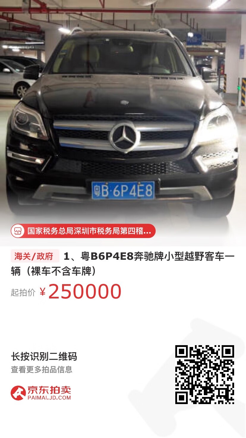 標(biāo)的1、車牌號(hào)碼為粵B6P4E8的奔馳牌小型越野客車一輛(裸車不含車牌)。