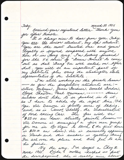 這次拍賣的物品還有李小龍生前書寫的名信片和注解的書本等。