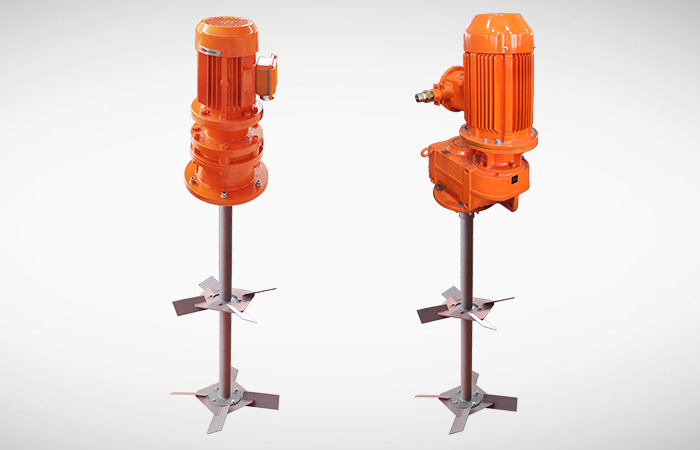 泥漿攪拌器屬于鉆井液罐式固控設(shè)備中的一種,其主要用于鉆井液的攪拌混合,防止鉆井液固相顆粒在其罐式循環(huán)系統(tǒng)中沉積,使循環(huán)鉆井液性能穩(wěn)定,混合均勻。泥漿攪拌器的傳動(dòng)結(jié)構(gòu)主要由電機(jī)、減速裝置、聯(lián)軸器及攪拌軸組成。在固控設(shè)備中最常用的泥漿攪拌器的形式并不多。主要為以下2種: